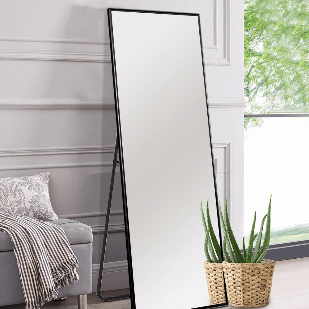 Check out NeuType full length floor mirror. This huge, oversized mirrors ais beautifully made with 90% glass and 10% metal. It can be leaned against the wall or hung vertically or horizontally with the gourd hooks on the back. Large enough to see your entire figure in a single glance, this mirror is perfect for any room in your home. Plus, they have many other sizes to choose from!
