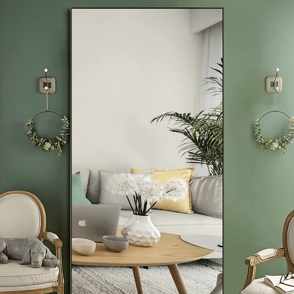 Oversized floor mirror is a stunning addition to any home. At 65" x 22", it's the perfect size to show your whole body, and at 40 pounds, it's just the right weight to lean against the wall. The mirror is available in two colors black or gold, so you can choose the perfect match for your décor. If you want to hang it on the wall, it's very easy, using screws and drywall anchors.